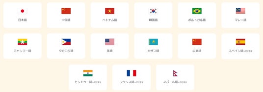 今後対応予定:スペイン語(スペイン)、ヒンドゥー語(インド)、フランス語(フランス)、ネパール語(ネパール)