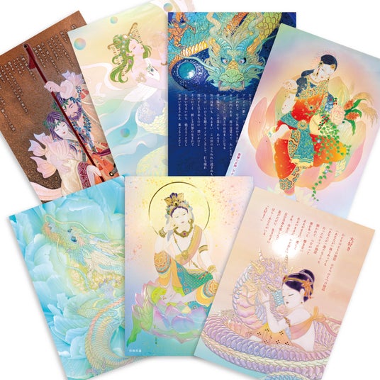 従来、四天王は憤怒の表情で武器を構えた武神や強者として男性の姿で表現されてきましたが、陶彩画ではあえて女性神として描かれています。作家は「無敵という言葉があるように、真の強さや安全は、敵を圧倒する力を持つことではなく、そもそも敵を作らないことや調和をなすこと。陶彩画では、融合や生成、愛情やつながりを感じる強さを表現したい。」と語ります。