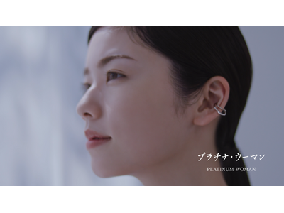 小芝さんの凛としたまなざしや表情は意志を感じさせるものがあり、そして耳や胸元には、プラチナ・ウーマンのイヤーカフやネックレスが、上品な輝きを放ちます。