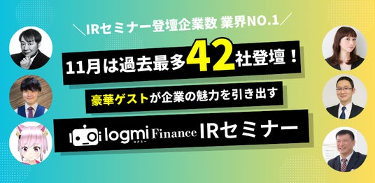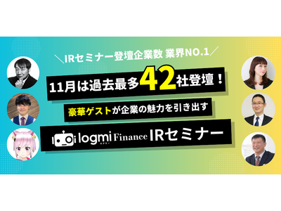 Sansanグループのログミー株式会社(本社:東京都港区、代表取締役社長:石本 卓也)が運営するIRメディア「ログミーFinance(ファイナンス)」は、決算シーズンである2024年11月、登壇企業数IR支援業界No.1のログミーFinance 個人投資家向けIRセミナー」において、月間登壇社数が過去最多の42社となります。引き続き、最大級のプラットフォームとして、個人投資家と上場企業の相互理解の機会を創出してまいります。