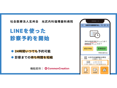 コモン・クリエーション株式会社は、社会医療法人玄州会 光武内科循環器科病院(以下、光武病院)と協業し、LINE公式アカウント「光武内科循環器科病院」において、トーク画面上から初診予約と定期受診の予約ができる機能を2024年11月1日より開始いたします。