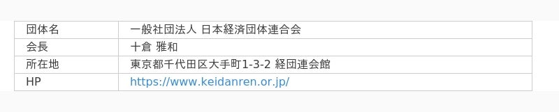 企業と企業を支える個人や地域の活力を引き出し、我が国経済の自律的な発展と国民生活の向上に寄与することを目的とした総合経済団体になります。