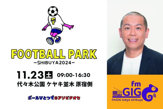 fmGIG TOKYO渋谷ステーションは、拠点とする”渋谷“を盛り上げたいという思いから、タカアンドトシ・トシが発起人を務める「FOOTBALL PARK SHIBUYA 2024」の開催にあたり、ラジオでの告知・PRや当日の映像関係など協力する運びとなりました。