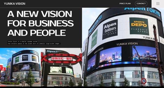 株式会社ユニカでは「ユニカビジョン」や新宿駅東口の3D巨大猫で話題となった「クロス新宿ビジョン」の運営により培ってきた知見、関連企業や行政機関とのパートナーシップを活かし、街頭ビジョンの運用代行・コンサルティング業務も行っています。