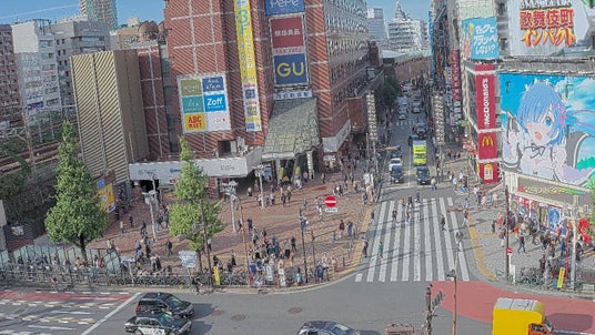 屋外広告媒体にカメラを設置し、画像解析AI技術を用いて広告の視聴者数や視聴態度を計測します。