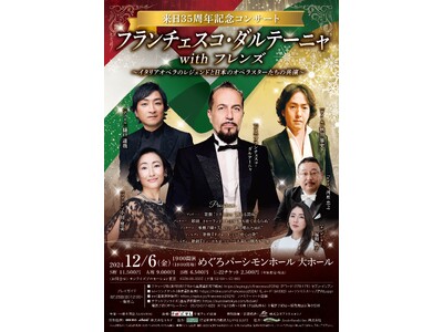 一般社団法人GOSMAC(神奈川県大和市、代表理事:佐佐木龍秋)は2024年12月6日(金)に東京目黒区の「めぐろパーシモンホール 大ホール」にて、イタリアオペラ最高峰のレジェンドであるフランチェスコ・ダルテーニャと日本を代表するオペラスターたちが共演する歌劇的コンサートを開催いたします。本物のオペラ衣裳を着用しての演奏ですので、まさに目と耳で楽しめるコンサートです。