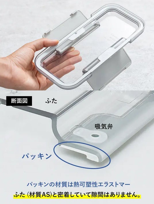 吸気弁付きなので、ふたが本体に吸い付きにくく、ふたの開け閉めがしやすくなっています。
