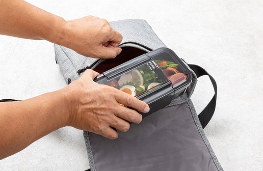 2:1段式だからおかずの量を気にせず 盛り付けしやすい、片手で持てるスリムなランチボックス。