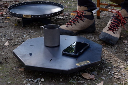 台座の先端をプレートに挿し込むことで焚き火台を安定して設置でき、使用しない際はサイドテーブルとしてもご活用いただけます。