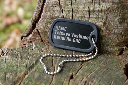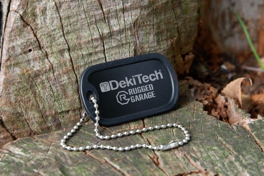・「DekiTech」「RUGGED GARAGE」両ブランドのロゴ、支援者のお名前、炎満本体のシリアルナンバーが刻印されたオリジナルドッグタグ