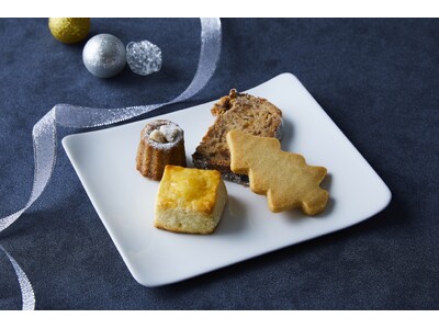 焼き菓子には、世界のクリスマスの食卓を思わせる発酵焼き菓子4種を盛り合わせました。バニラとレモンが香るイギリスの伝統焼き菓子スコーン、その名もフランス語で「スパイスのパン」という意味を持つスパイス香る「パンデピス」、ドイツのクリスマスには欠かせない7種のフルーツを使用した「シュトーレン」、また、ツリーの形をした