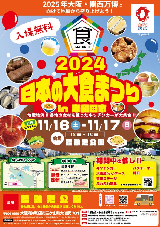 この度、日本の食まつり実行委員会(実行委員長:枦山義彦)は、2024年11月16日(土)11月17日(日)に蜻蛉池公園にて「日本の食まつりin岸和田市」を開催いたします。