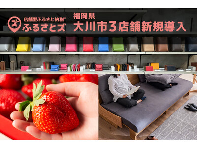 2024年10月後半から11月にかけて福岡県大川市での店舗型ふるさと納税(R)『ふるさとズ』の導入が新たに3店舗増え、オンラインオフライン合わせて18店舗で寄附受付をしています。