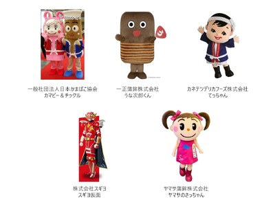 参加予定のゆるキャラは、一般社団法人日本かまぼこ協会「カマピー&チックル」、一正蒲鉾株式会社「うな次郎くん」、カネテツデリカフーズ株式会社「てっちゃん」、株式会社スギヨ「スギヨ仮面」、ヤマサ蒲鉾株式会社「ヤマサのさっちゃん」です。ぜひお越しください。