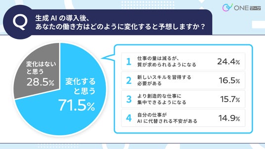 大半が「AI導入で仕事内容が変化する」と回答。仕事に対して質が求められる傾向に。