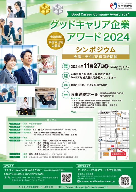 厚生労働省はこのたび、従業員の自律的なキャリア形成支援に取り組む企業15社を「グッドキャリア企業アワード2024」受賞企業に決定しました。