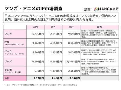 マンガやアニメを起点としたIPは、それぞれの業界にとどまらず、ゲーム、グッズ、ライブエンターテイメントなどに展開していることは広く知られていますが、これら全てを横断した市場調査は、これまで毎年継続する形では行われてまいりませんでした。