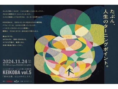 合同会社かけるアート(代表社員 藤澤 恵太)は、出演者それぞれが自分を見つけ、100%の自分を表現するアートカンファレンス『KEIKOBA vol.5 資本主義、以上のわたしたち』を、11月24日(日)SHIBUYA QWSにて開催いたします。