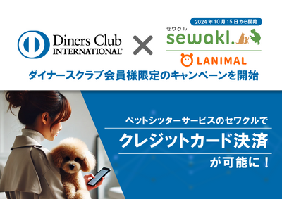 ご家庭にプロのペットシッターを派遣し、飼い主不在時のペットのお世話やお散歩の代行を行うサービス「セワクル」を運営する株式会社ラニマル(本社 : 東京都千代田区、代表取締役 : クレーン 淳、設立:2021年5月)は、2024年10月15日から、ダイナースクラブカードを発行する三井住友トラストクラブ株式会社(本社:東京都中央区、代表取締役:五十嵐 幸司、設立:1960年12月)と提携し、ダイナースクラブ会員様へ新規ご利用キャンペーンを開始することを公表いたします。