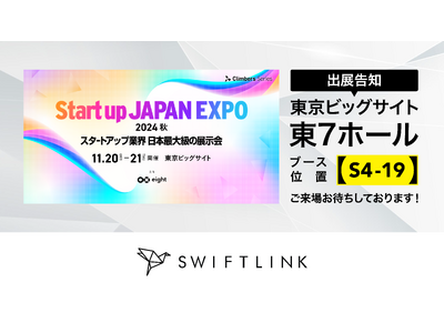 SwiftLink株式会社(本社:東京都中央区)は、2024年11月20日(水)から21日(木)まで、東京ビッグサイトで開催される「Climbers Startup JAPAN EXPO 2024 - 秋 -」に、ブースを出展いたします。