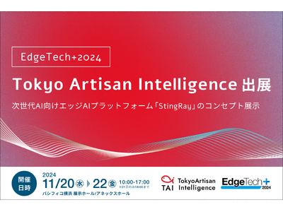 エッジAIプロダクトの開発を行うTokyo Artisan Intelligence株式会社(本社:神奈川県横浜市、代表取締役:中原 啓貴)は、2024年11月20日からパシフィコ横浜で開催される「EdgeTech+ 2024」に出展いたします。「EdgeTech+ 2024」とはAI/生成AIで加速する事業変革と産業DXをテーマに開催する展示会です。今回はEfinix,Inc.ブース内に出展している株式会社エフソルに協力いただき、Tokyo Artisan Intelligenceが開発中のEfinix社 Titanium FPGAを搭載したエッジAIプラットフォーム「StingRay」のコンセプトを展示します。