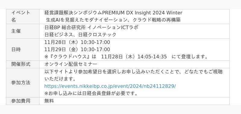 オンライン無料開催・日経BP主催「DX Insight 2024 Winter」に登壇