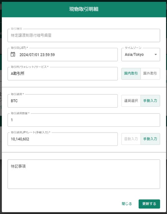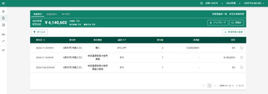 step5 登録された暗号資産の情報とみなし譲渡の損益が作成されます。