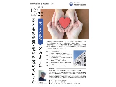 特定非営利活動法人 児童虐待防止協会では、支援が必要な子どもと保護者が、孤立せず支援者や社会 とつながり、子ども虐待を生み出さない社会を作ることを目指して活動しています。今年度の特別セミナーでは、「子どもの意見・思いを聴く」を取り上げました。西澤 哲 先生には、社会的養護のもとにいる子どもたちが心理治療等で表現する思いをお話ししていただきます。ご参加をお待ちしています。
