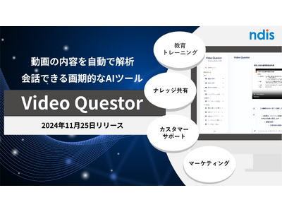 NDIソリューションズ株式会社(本社:東京都港区、代表取締役:岩井 淳文、以下NDIS)は、11月25日に動画解析と対話を融合したAIサービス「Video Questor(ビデオクエスター)」を提供開始いたします。