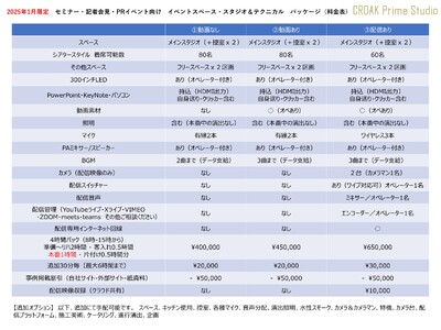 イベントスペース・スタジオ事業を展開するクローク株式会社は、2025年1月限定 セミナー・記者会見・PRイベント向け イベントスペース・スタジオ&テクニカル パッケージをリリース致しました。
