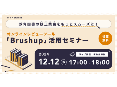 クリエイティブ市場の総合商社・株式会社Too(本社/東京都港区虎ノ門3-4-7、社長/石井剛太、以下Too)は、「教育図書の校正業務をもっとスムーズに!オンラインレビューツール「Brushup」活用セミナー」を2024年12月12日(木)に開催します。