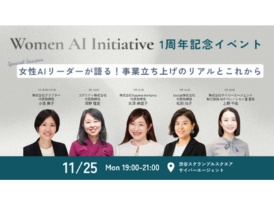 Cynthialy株式会社(所在地:東京都渋谷区、代表取締役:國本知里、以下Cynthialy)が運営する女性AIリーダー人材の育成・推進コミュニティ「Women AI Initiative」は、設立から1周年を記念したイベントを11月25日(月)19時より渋谷のサイバーエージェント本社にて開催することをお知らせいたします。