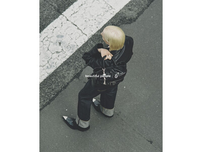 今回のコラボレーションでは、beautiful peopleのアイコニックなヴィンテージライダースジャケットのエッセンスを凝縮したような、繊細なシボ感と艶を併せ持つ羊革を使用した「riders kids tote bag」、「riders flap purse」、「riders petit wallet」の3種類のアイテムが登場いたします。