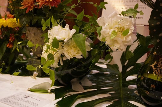 他にもイベントでは、来場者が明るい色彩の花を1輪持参し、来場の際に1メートル強の水をはった水盤にそれぞれ花(花首)をあしらい、来場者全員でフラワーアート、インスタレーション「モネの睡蓮の庭」を制作するという粋な企画も行われた。