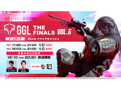 誰でも参加が可能なTHE FINALSのeスポーツ大会「GGL:THE FINALS VOL.6」の配信・運営を実施する事をお知らせいたします。