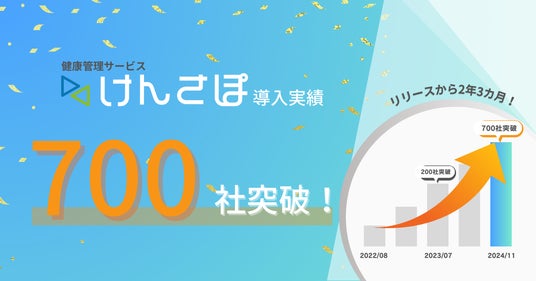 株式会社Personal Health Tech(本社:大阪府大阪市、代表取締役:新田哲哉)が提供する企業向け健康管理サービス「けんさぽ」は、2022年8月のリリースから約2年3ヵ月で累計導入社数が700社を突破いたしました。「100円で始める健康管理」をコンセプトに、低コストで始められる健康管理サービスとして多くの企業様からご好評いただいています。