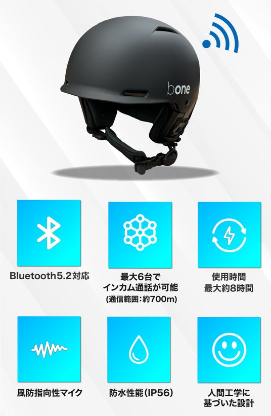 「滑走中も自由に通話ができるboneスノーゴーグルのインカム機能を親子で使いたい」というご愛用者様から多くいただいたお声をもとに新たに開発した待望のNEWアイテム。