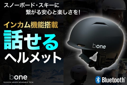 【bone TALKY】(ビーワン トーキー)は世界初となるBluetoothインカム通話機能を搭載したスノーゴーグル【bone】から新たに登場したジュニア用スノーヘルメット。