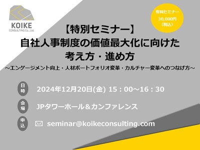 小池コンサルティング株式会社(所在地:東京都千代田区、代表取締役社長:小池陽二郎)は、2024年12月20日(金)に【