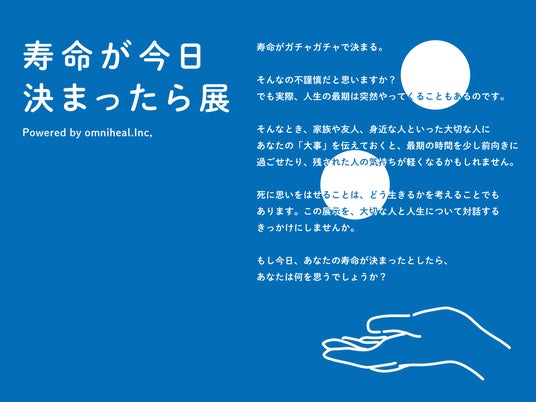 株式会社omnihealの「寿命が今日決まったら展」は、健康成人向けの「一般的なACP」を早期から普及啓発する体験型展示です。