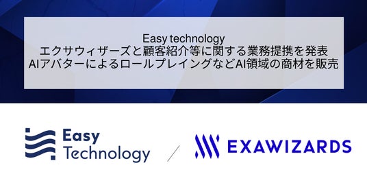 株式会社Easy technology(東京都新宿区、代表取締役:三宅俊也、以下「Easy technology」)は、株式会社エクサウィザーズ(東京都港区、代表取締役: 春田真、以下、「エクサウィザーズ」、)と顧客紹介に関する契約を締結したことを発表いたします。