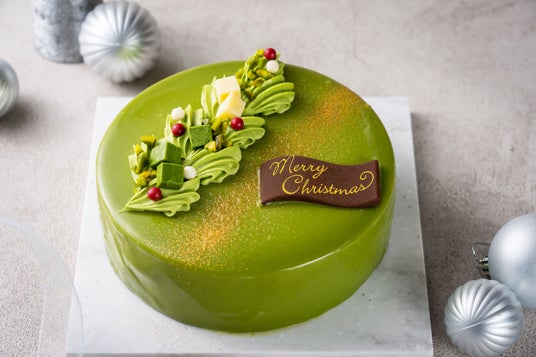 老舗のお茶屋のこだわりを詰め込んだ、濃厚な抹茶の風味が口に広がる7層仕立てのクリスマスケーキ。宇治抹茶を使ったアイスやベリーとご一緒にお楽しみください。