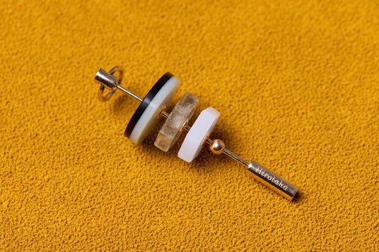 "Spear" ドアノッカー ピアス L サイズ /ディスク オニキス/マザーオブパール&ヘキサゴン ルチル&ヘキサゴン ホワイトアゲート&ゴールドビーズ
