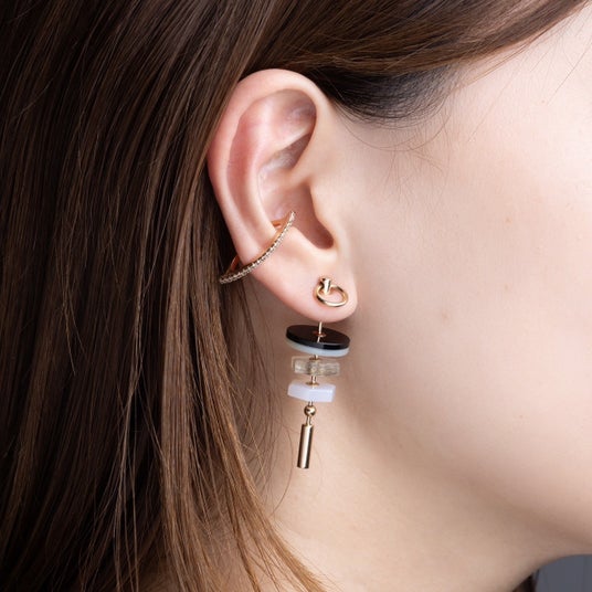 美しい天然石を、ジュエリーに込めた根源的な意味・願いを形にしたスピア=槍 に通し重ねることで、色&立体的な広がりを楽しめる新しいスタイルのピアスコレクション。カラーやサイズの異なるストーンを自由に組み合わせ、自分好みにカスタマイズできることが魅力のひとつ。アシンメトリーなスタイルで、驚くほどデイリーなスタイリングに活躍します。