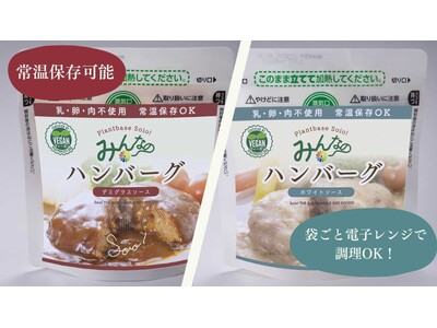 「Soio! みんなのハンバーグ」は乳・卵・肉を一切使用しておらず、「デミグラスソース・ホワイトソース」両ソースともに「ヴィーガン認証」を取得しておりヴィーガンの方はもちろん、乳・卵・お肉アレルギーをお持ちの方・健康志向でお肉を控えていらっしゃる方などにも美味しく安心してお召し上がりいただける商品です。