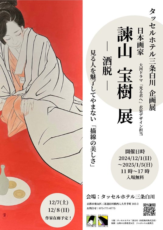 西松建設グループの西松地所株式会社が運営するタッセルホテル三条白川(京都市東山区)は2024年12月1日(日)~2025年1月5日(日)の間、館内の1階ラウンジにて京都市立芸術大学卒の日本画家、諫山宝樹(恵実)個展を開催。