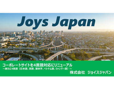 株式会社ジョイスジャパン(本社:東京都渋谷区、代表取締役:堤敦)は、グローバル展開を見据え、コーポレートサイト(http://joys-japan.co.jp/)を刷新し、新たに4言語(日本語、英語、繁体字、ベトナム語、ミャンマー語)での公開を開始いたしました。