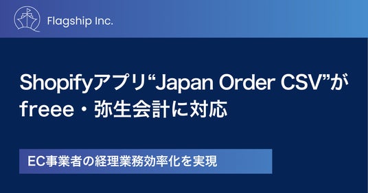 フラッグシップ株式会社(本社:東京都千代田区、代表取締役:神馬光滋、以下「フラッグシップ」)は、Shopify(ショッピファイ)向けアプリ「Japan Order CSV」において、フリー株式会社の「freee会計」および弥生株式会社の「弥生会計オンライン」に連携するCSVデータ出力機能(β版)の提供を開始いたしました。