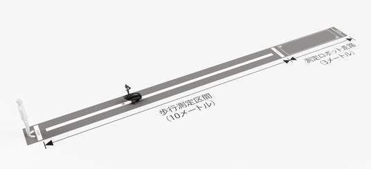 - 従来の動作解析と異なり測定マーカーの貼付が不要で、被験者は平らな直線を10m歩行するだけで測定可能