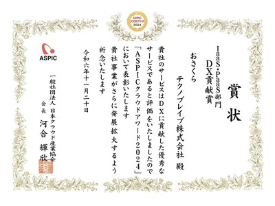 テクノブレイブ株式会社(本社:東京都千代田区、代表取締役社長:西村 陽一、以下テクノブレイブ)が提供する、さくらのクラウドの導入、PoCに特化したSIサービスソリューション 【おさくら】が2024年11月20日に開催された、一般社団法人日本クラウド産業協会(ASPIC)主催の第18回「ASPICクラウドアワード2024」において、IaaS・PaaS部門のDX貢献賞を受賞しました。